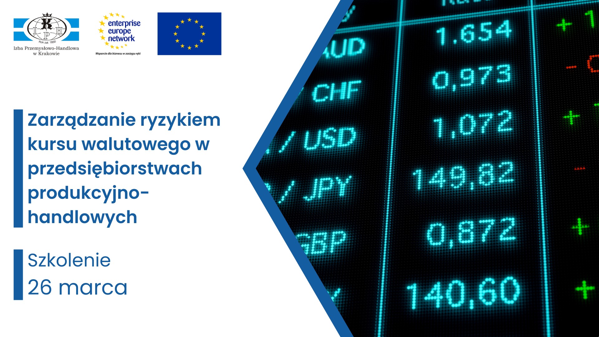 Jeśli wahania kursów walut utrudniają Państwu prowadzenie działalności, wpływają na wysokość marż handlowych, komplikują planowanie budżetu przy kontraktach zagranicznych lub powodują ujemne różnice kursowe w bilansie firmy — warto przyjrzeć się temu bliżej. Odpowiedzią na te wyzwania może być bezpłatne, dwuczęściowe szkolenie „Zarządzanie ryzykiem kursu walutowego w przedsiębiorstwach produkcyjno-handlowych”, które pokaże, jak skuteczniej zarządzać ryzykiem kursowym w działalności biznesowej.