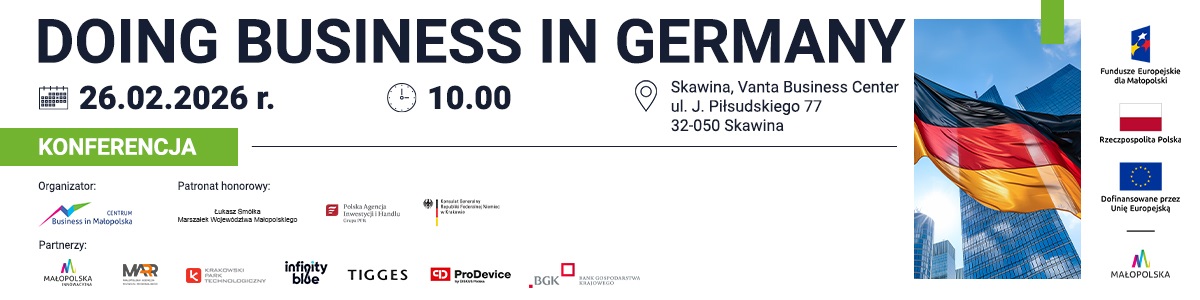 Niemcy od lat pozostają filarem polskiego eksportu. Mimo globalnych zawirowań, tamtejszy rynek wciąż oferuje małopolskim firmom to, co najcenniejsze: stabilność, ogromną skalę i bliskość geograficzną. Jak jednak przekuć ten potencjał w realny sukces? Centrum Business in Małopolska zaprasza na spotkanie, które pomoże znaleźć odpowiedzi na najważniejsze pytania.